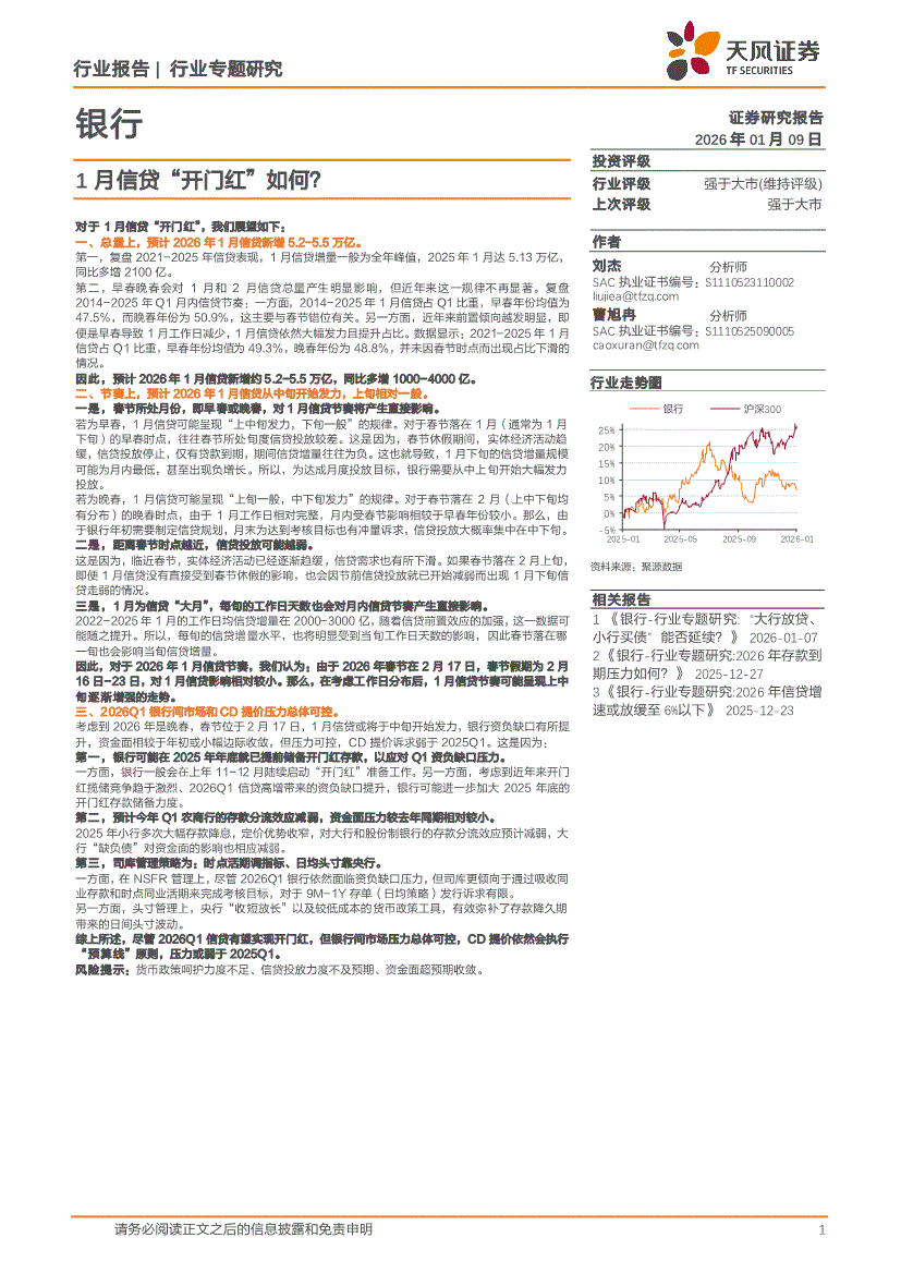 银行业:天风证券-银行业专题研究:1月信贷“开门红”如何?-260109