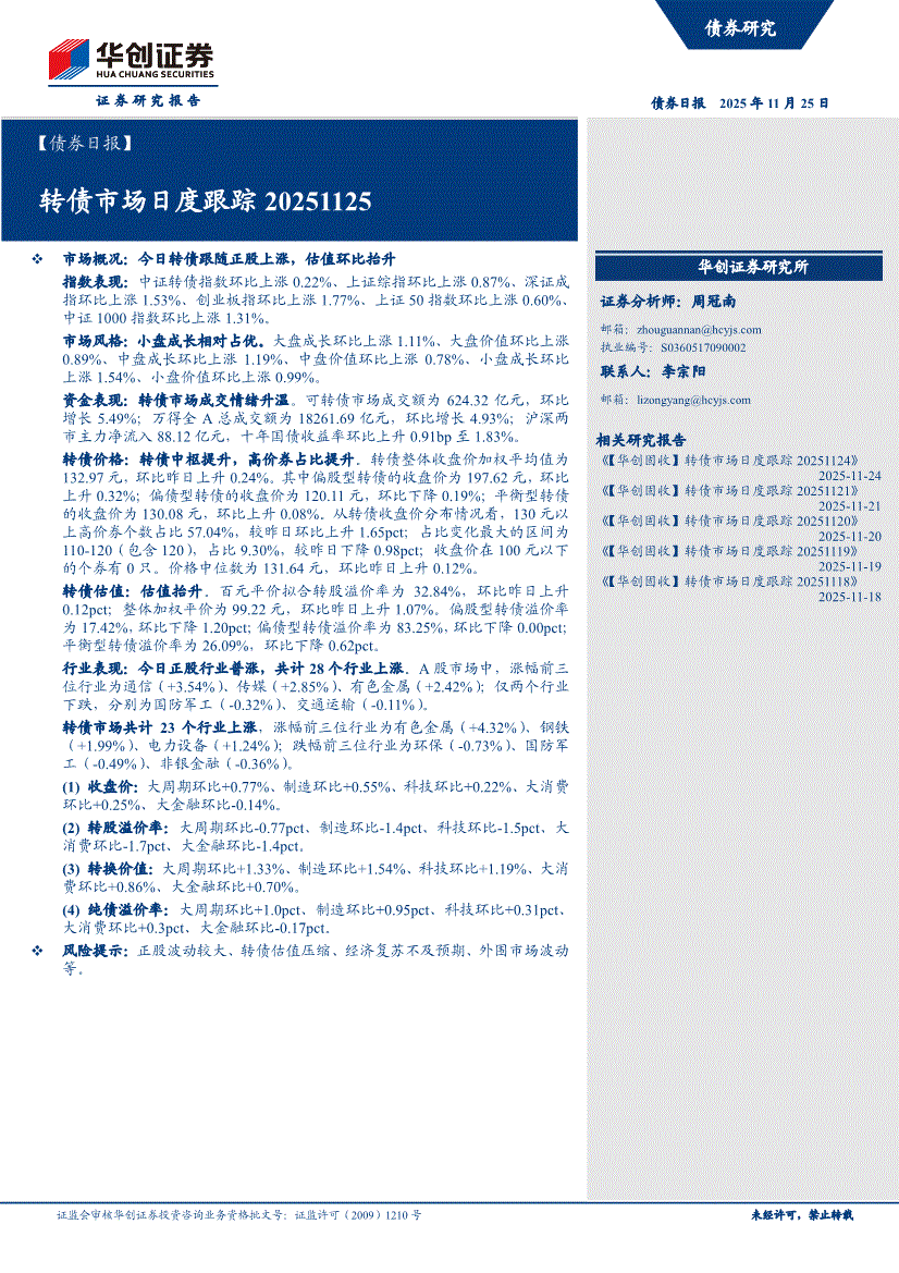 华创证券-【债券日报】转债市场日度跟踪-251125