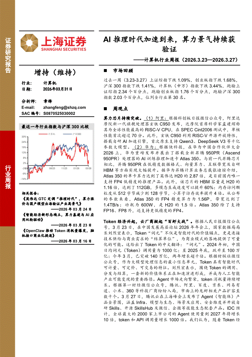 计算机行业:上海证券-计算机行业周报:AI推理时代加速到来,算力景气持续获验证-260331