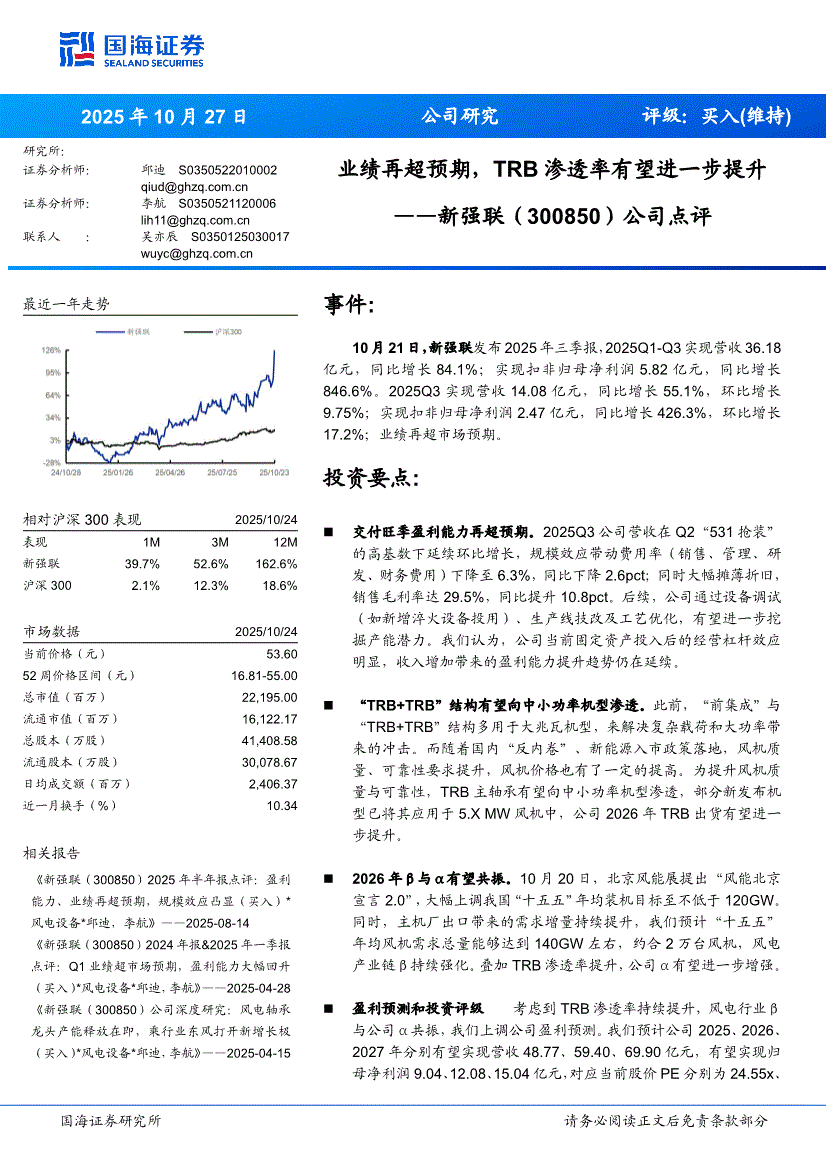 新强联:国海证券-新强联-300850-公司点评:业绩再超预期,TRB渗透率有望进一步提升-251027