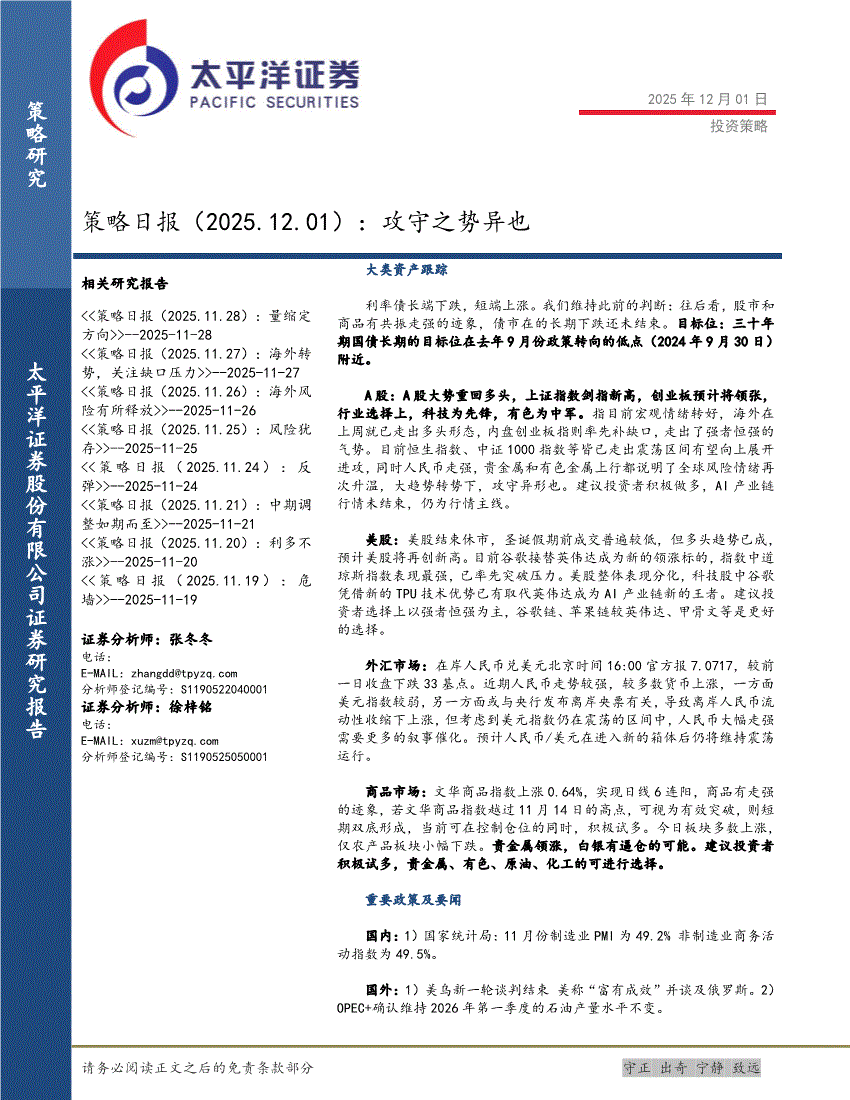 太平洋证券-策略日报:攻守之势异也-251201