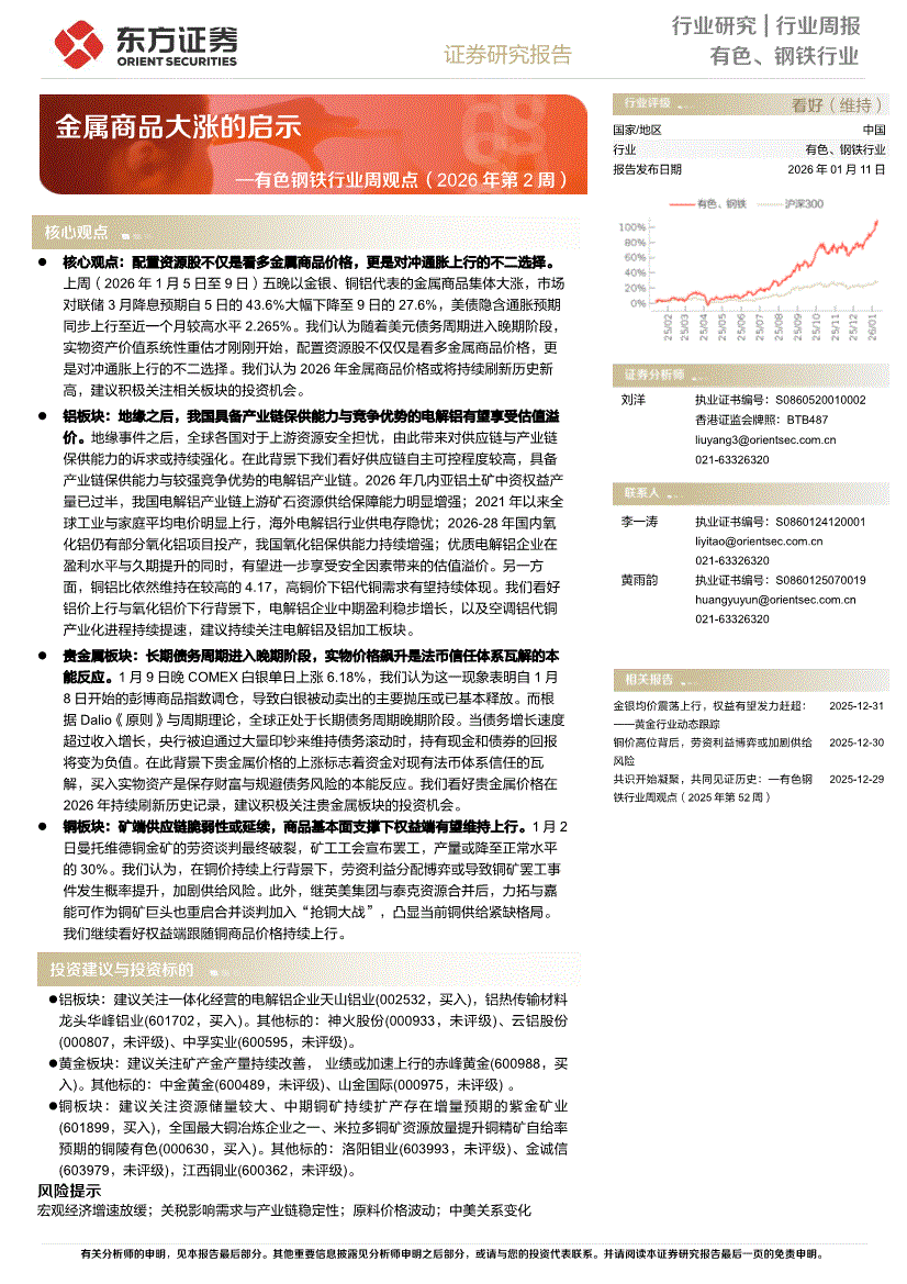 有色、钢铁行业:东方证券-有色钢铁行业周观点(2026年第2周):金属商品大涨的启示-260111