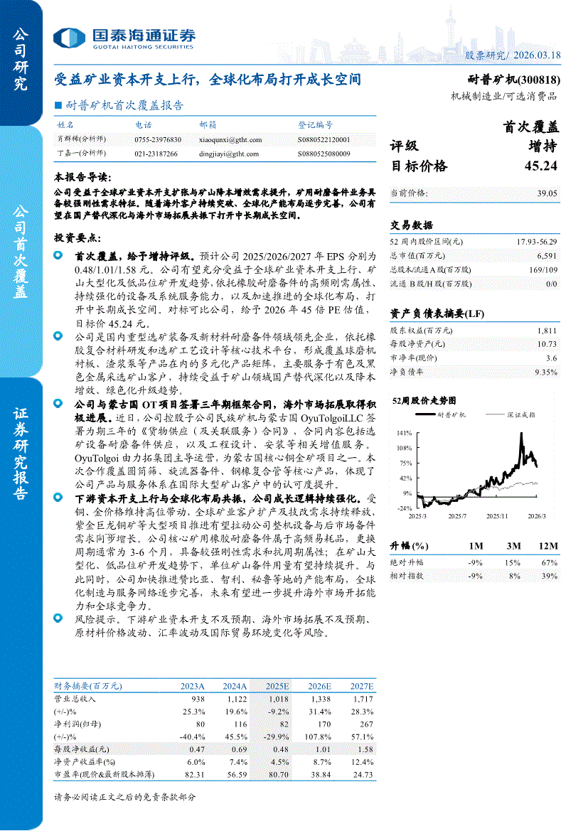 耐普矿机:国泰海通证券-耐普矿机-300818-首次覆盖报告:受益矿业资本开支上行,全球化布局打开成长空间-260318