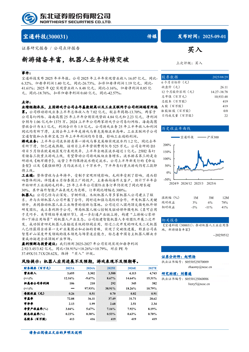 宝通科技:东北证券-宝通科技-300031-新游储备丰富,机器人业务持续突破-250901
