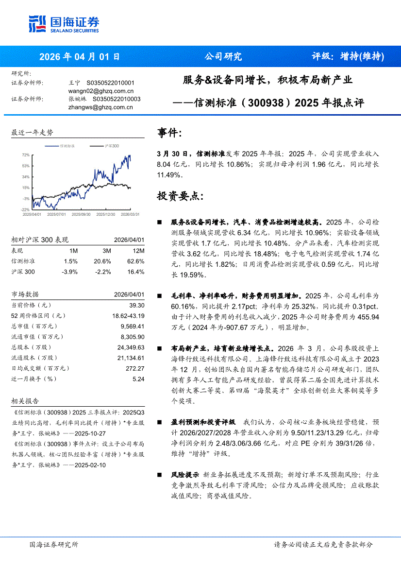 信测标准:国海证券-信测标准-300938-2025年报点评:服务&设备同增长,积极布局新产业-260401
