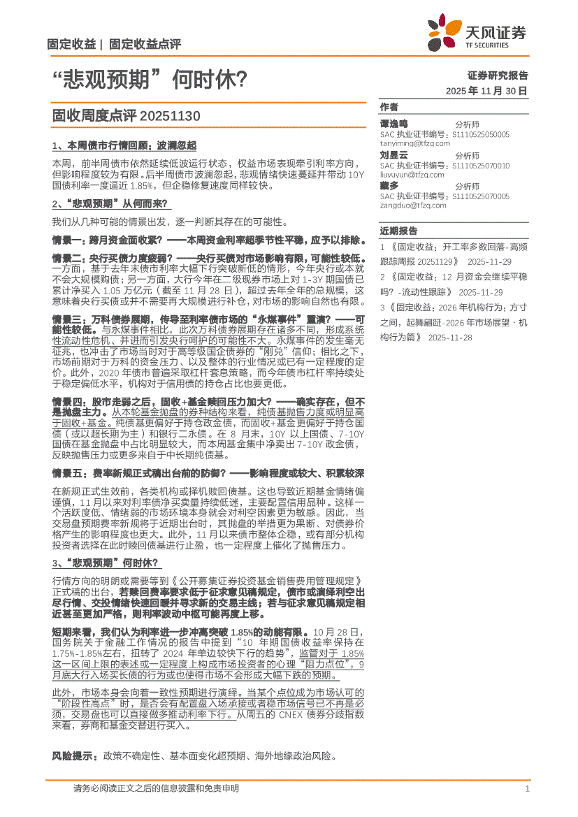 天风证券-固收周度点评:“悲观预期”何时休?-251130