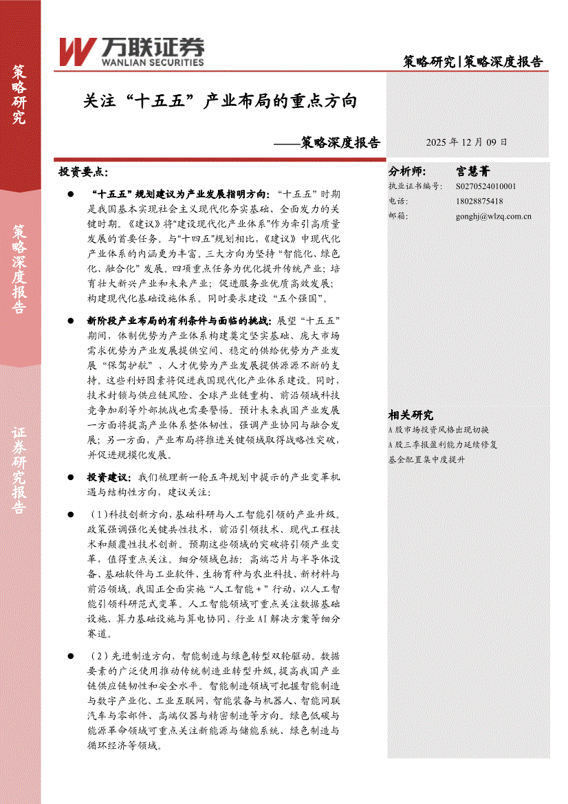 万联证券-策略深度报告:关注“十五五”产业布局的重点方向-251209
