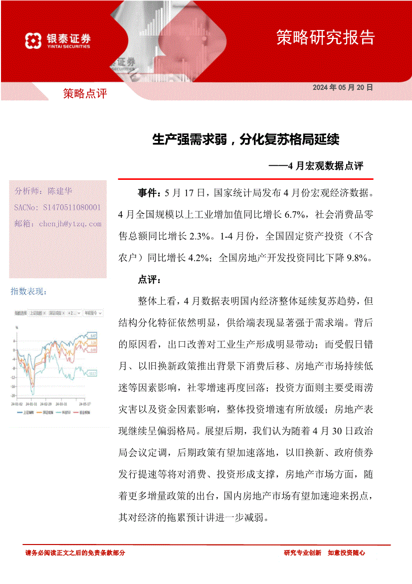 银泰证券-4月宏观数据点评:生产强需求弱,分化复苏格局延续-240520