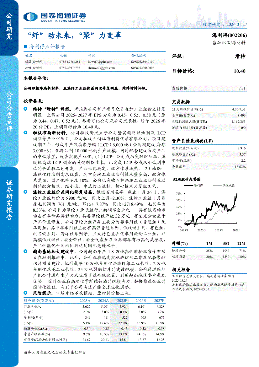 海利得:国泰海通证券-海利得-002206-点评报告:“纤”动未来,“聚”力变革-260127