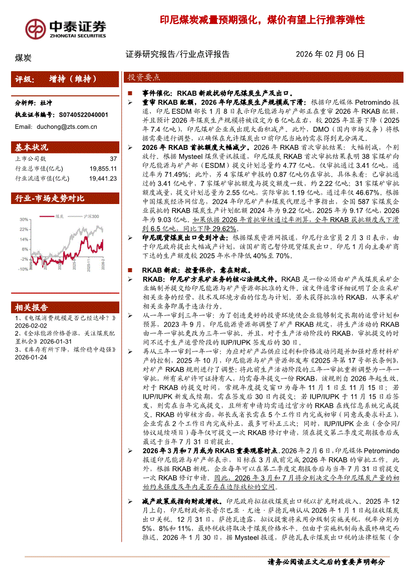 煤炭行业:中泰证券-煤炭行业:印尼煤炭减量预期强化,煤价有望上行推荐弹性-260206