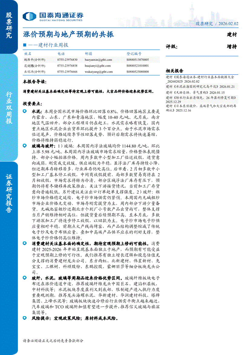 建材行业:国泰海通证券-建材行业周报:涨价预期与地产预期的共振-260202