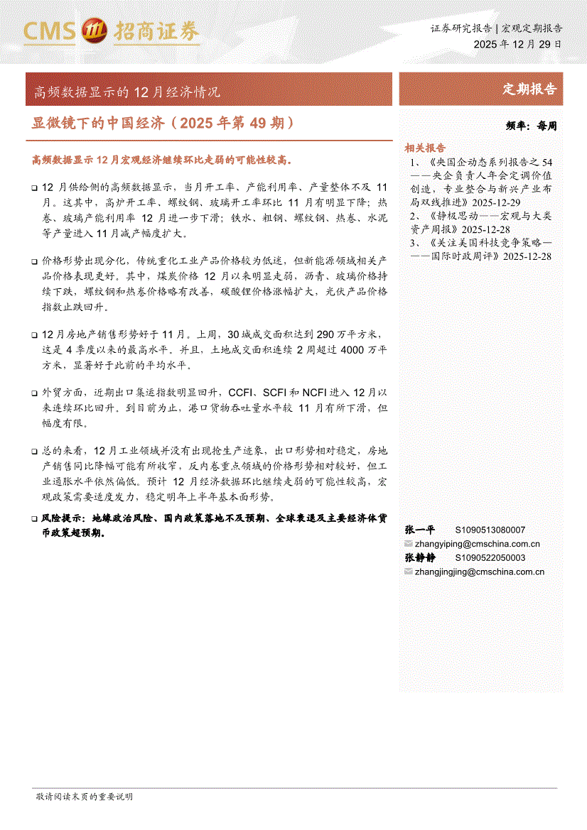 招商证券-显微镜下的中国经济(2025年第49期):高频数据显示的12月经济情况-251229