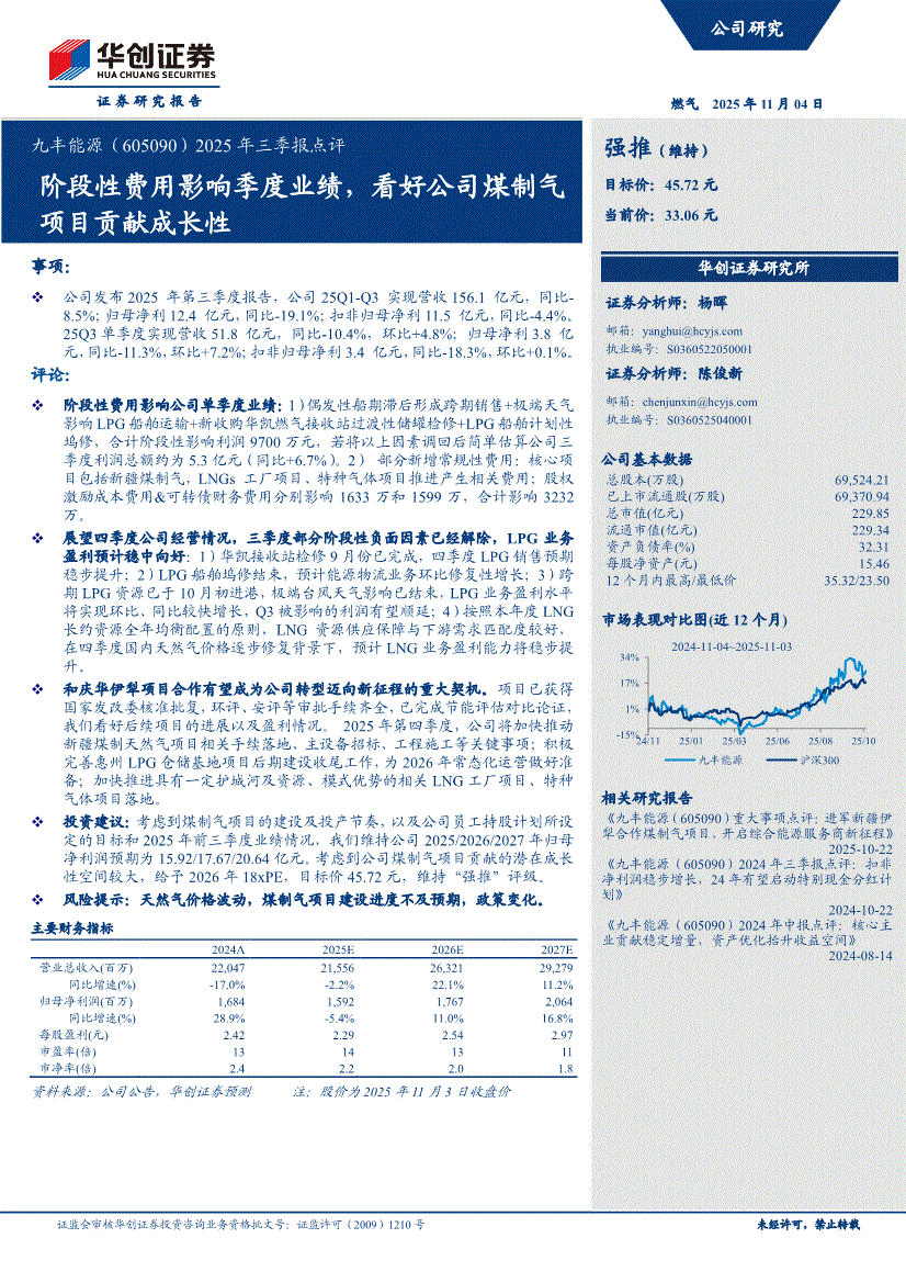 九丰能源:华创证券-九丰能源-605090-2025年三季报点评:阶段性费用影响季度业绩,看好公司煤制气项目贡献成长性-251104