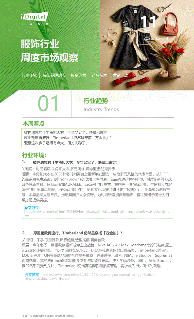 艾瑞咨询-服饰行业周度市场观察2026年第11周-260321