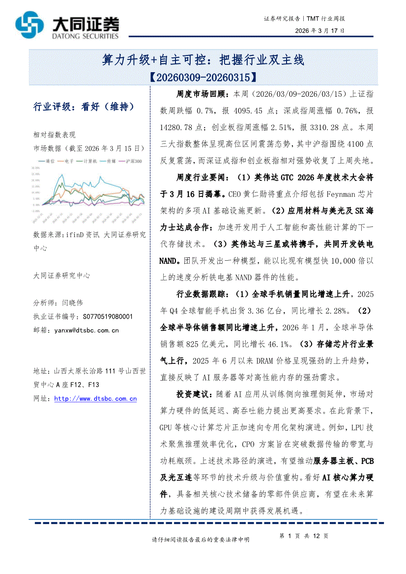 TMT行业:大同证券-TMT行业周报:算力升级+自主可控,把握行业双主线-260317