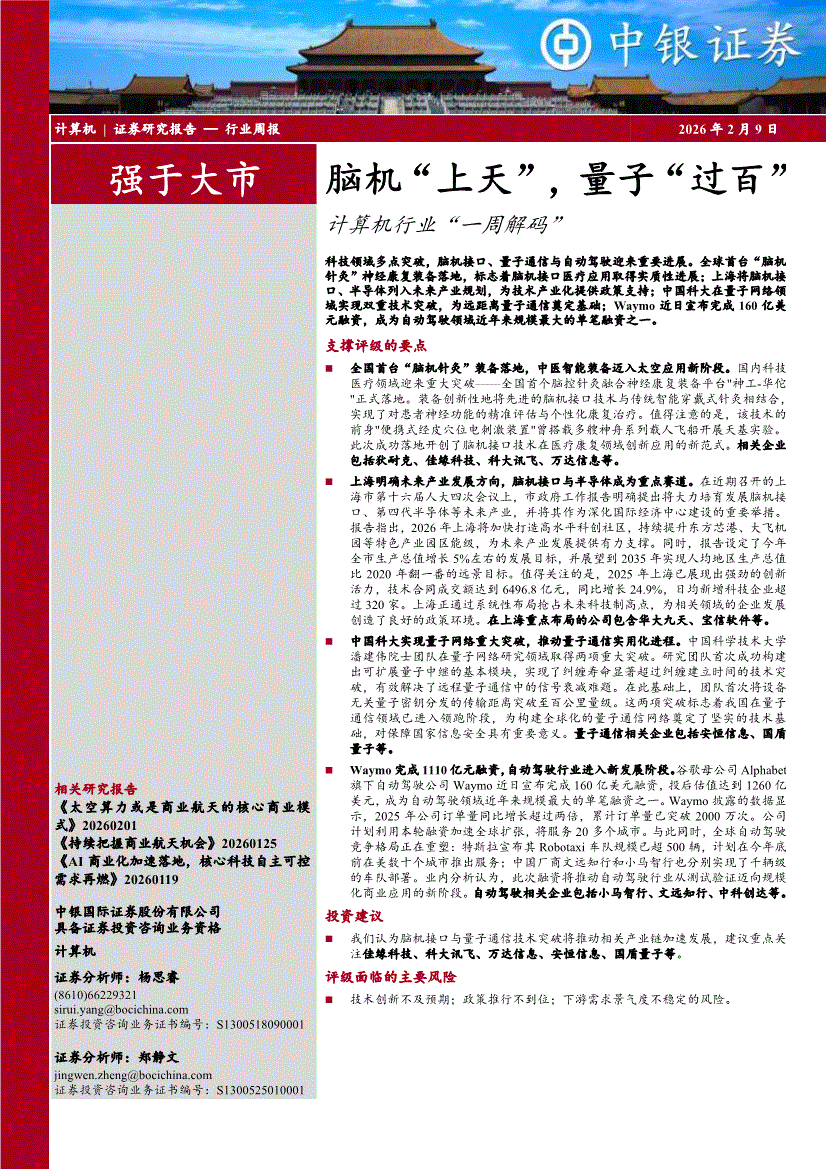 计算机行业:中银国际-计算机行业“一周解码”:脑机“上天”,量子“过百”-260209