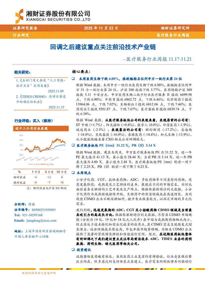 湘财证券-医疗服务行业周报:TIDES CRDMO,高增长赛道中的确定性机会-251115