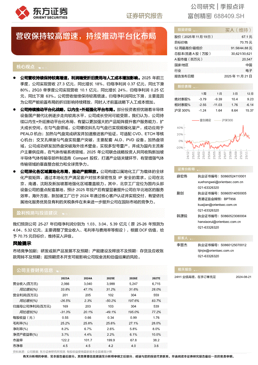 富创精密:东方证券-富创精密-688409-营收保持较高增速,持续推动平台化布局-251121