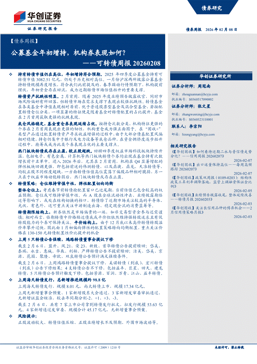 华创证券-【债券周报】可转债周报:公募基金年初增持,机构券表现如何?-260208