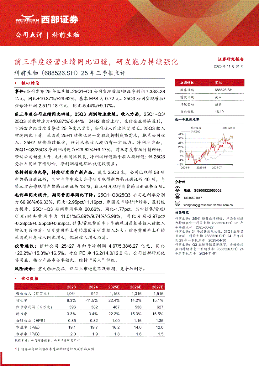 科前生物:西部证券-科前生物-688526-25年三季报点评:前三季度经营业绩同比回暖,研发能力持续强化-251101