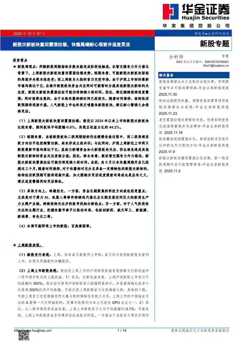 华金证券-新股专题:新股次新板块重回震荡拉锯,休整尾端耐心观察并适度灵活-251207