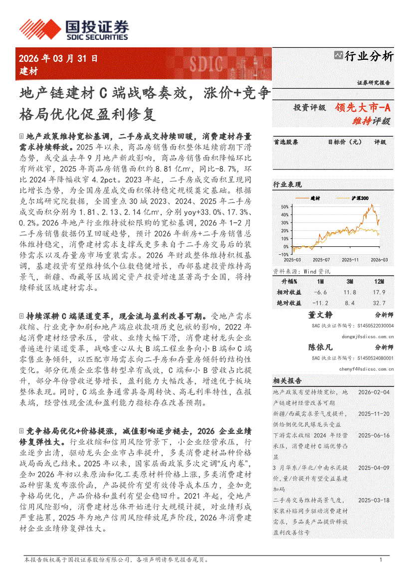 建材行业:国投证券-建材行业分析:地产链建材C端战略奏效,涨价+竞争格局优化促盈利修复-260331