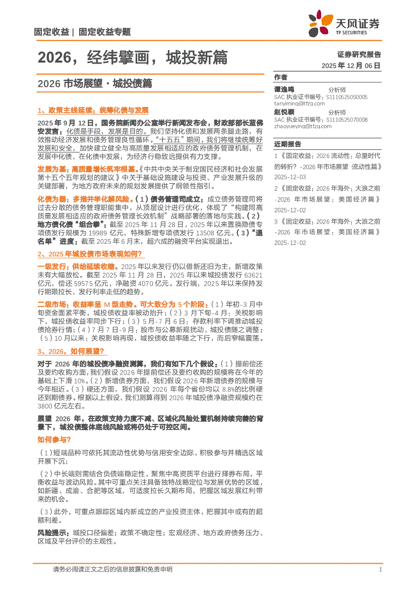 天风证券-2026市场展望·城投债篇:2026,经纬擘画,城投新篇-251206