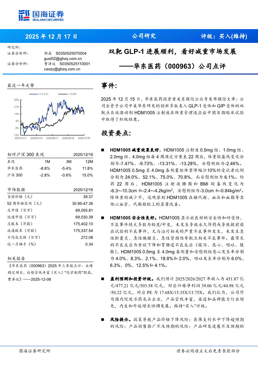 华东医药:国海证券-华东医药-000963-公司点评:双靶GLP~1进展顺利,看好减重市场发展-251217