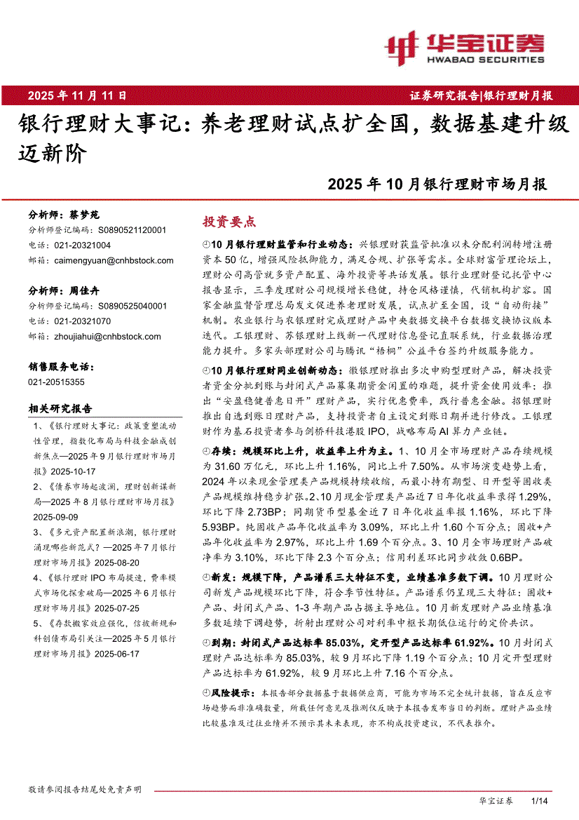 银行业:华宝证券-2025年10月银行业理财市场月报:银行理财大事记,养老理财试点扩全国,数据基建升级迈新阶-251111