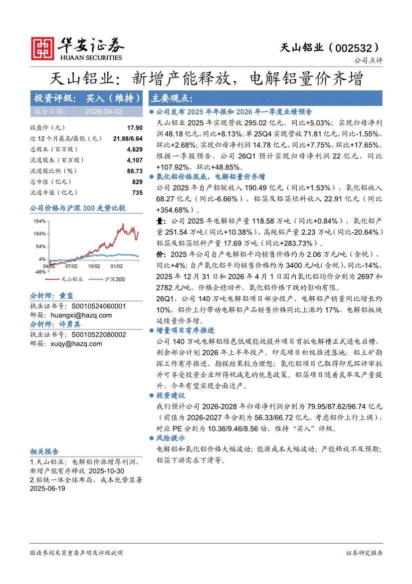 天山铝业:华安证券-天山铝业-002532-新增产能释放,电解铝量价齐增-260402