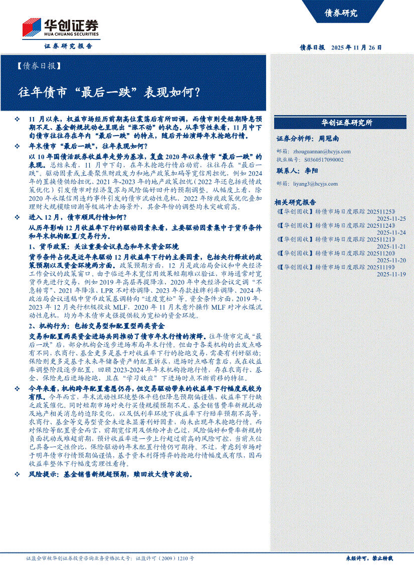 华创证券-【债券日报】往年债市“最后一跌”表现如何?-251126