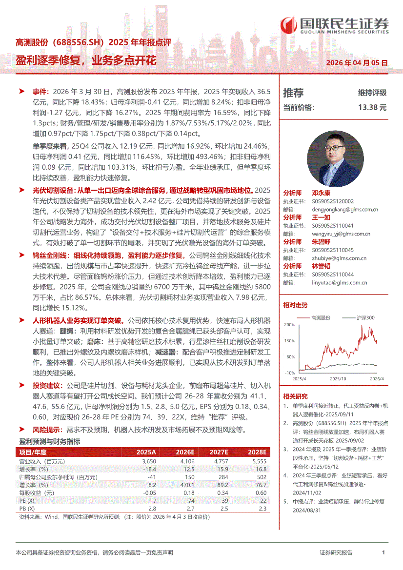 高测股份:国联民生证券-高测股份-688556-2025年年报点评:盈利逐季修复,业务多点开花-260405