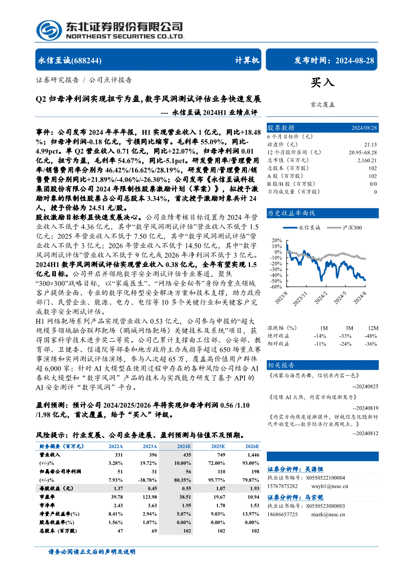 永信至诚:东北证券-永信至诚-688244-2024H1业绩点评:Q2归母净利润实现扭亏为盈,数字风洞测试评估业务快速发展-240828