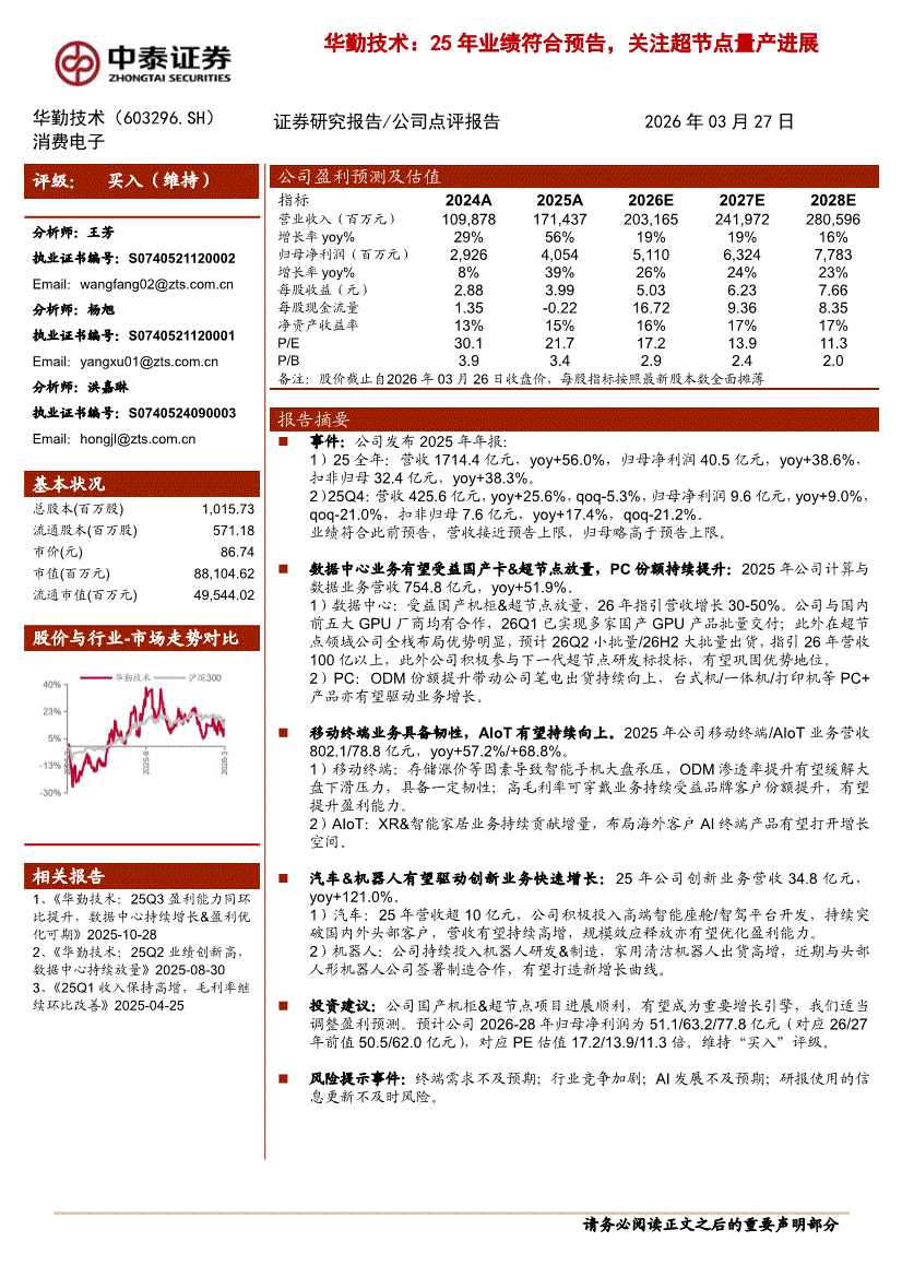中泰证券-华勤技术-603296-25年业绩符合预告,关注超节点量产进展-260327