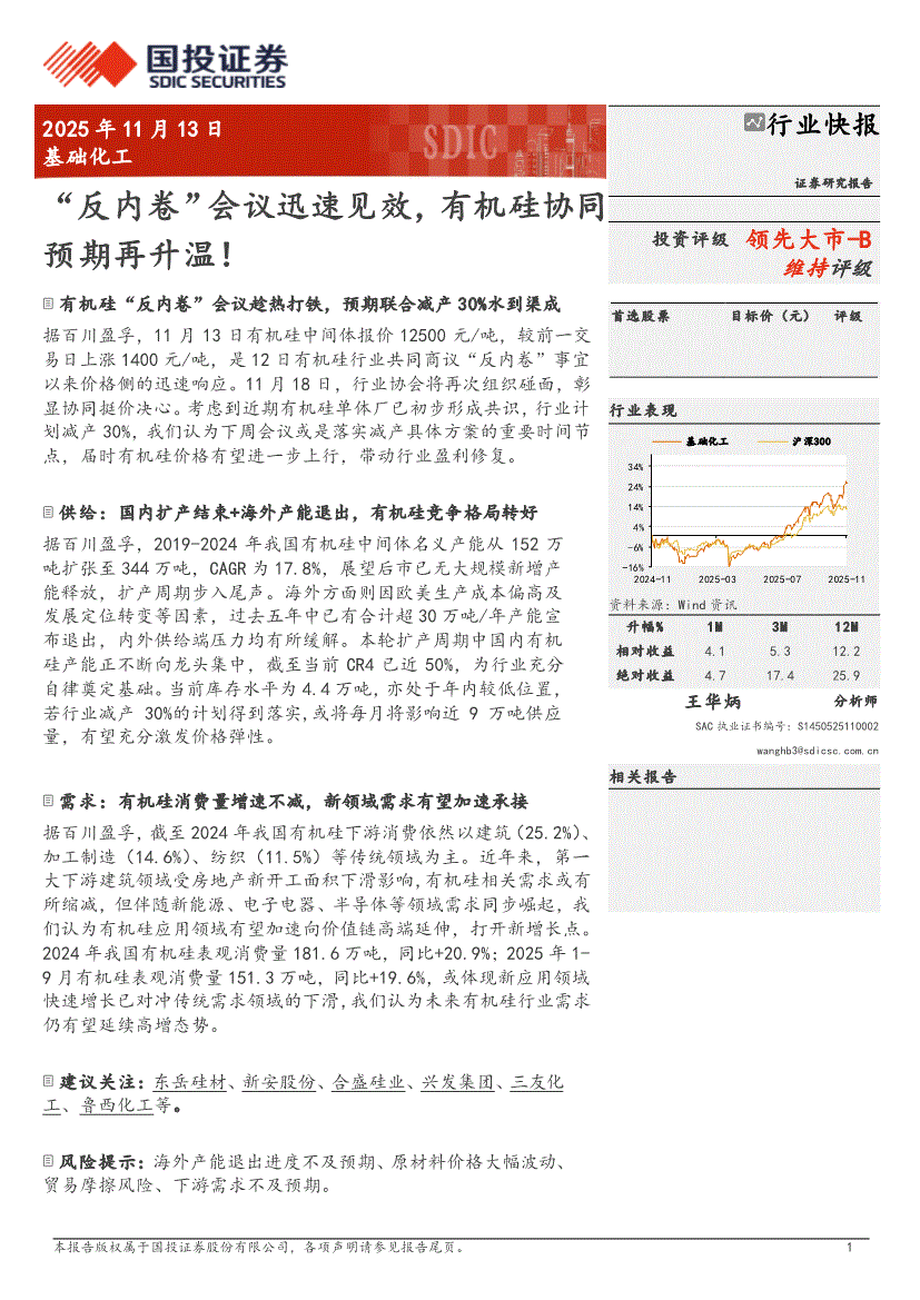 基础化工行业:国投证券-基础化工行业:“反内卷”会议迅速见效,有机硅协同预期再升温!-251113