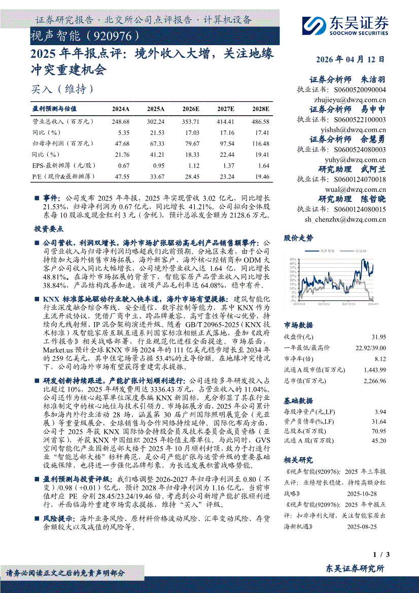 东吴证券-视声智能-920976-2025年年报点评:境外收入大增,关注地缘冲突重建机会-260412