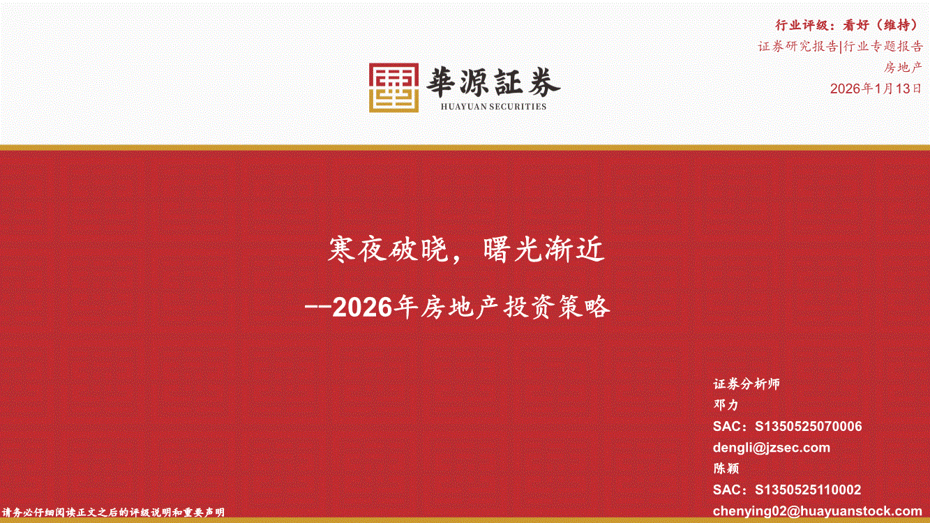 房地产行业:华源证券-2026年房地产行业投资策略:寒夜破晓,曙光渐近-260113