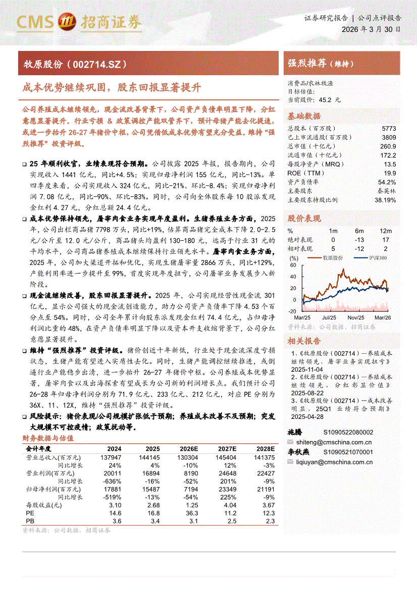 牧原股份:招商证券-牧原股份-002714-成本优势继续巩固,股东回报显著提升-260330