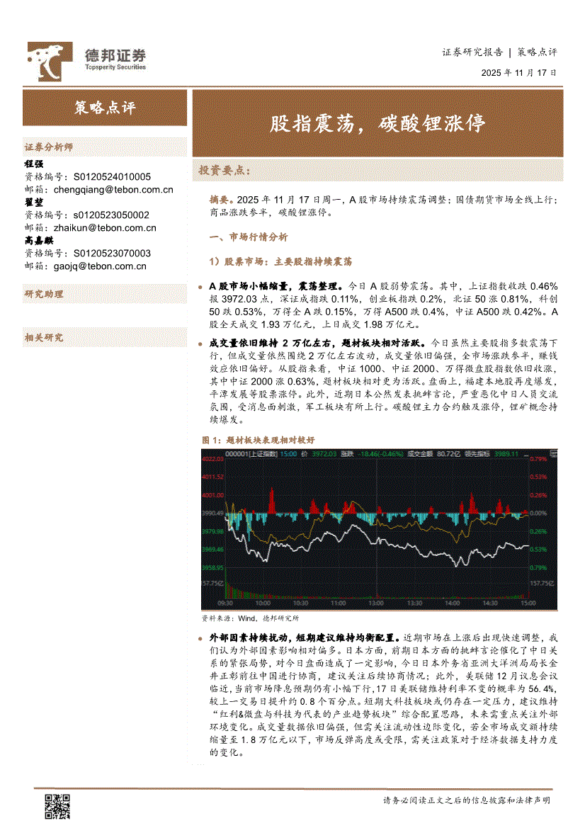 德邦证券-策略点评:股指震荡,碳酸锂涨停-251117