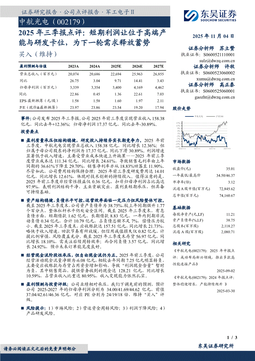 中航光电:东吴证券-中航光电-002179-2025年三季报点评:短期利润让位于高端产能与研发卡位,为下一轮需求释放蓄势-251104