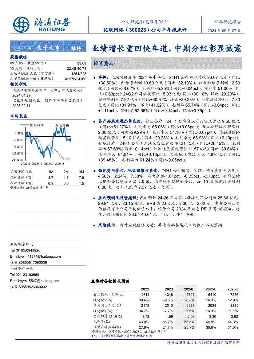 亿联网络:海通证券-亿联网络-300628-公司半年报点评:业绩增长重回快车道,中期分红彰显诚意-240907