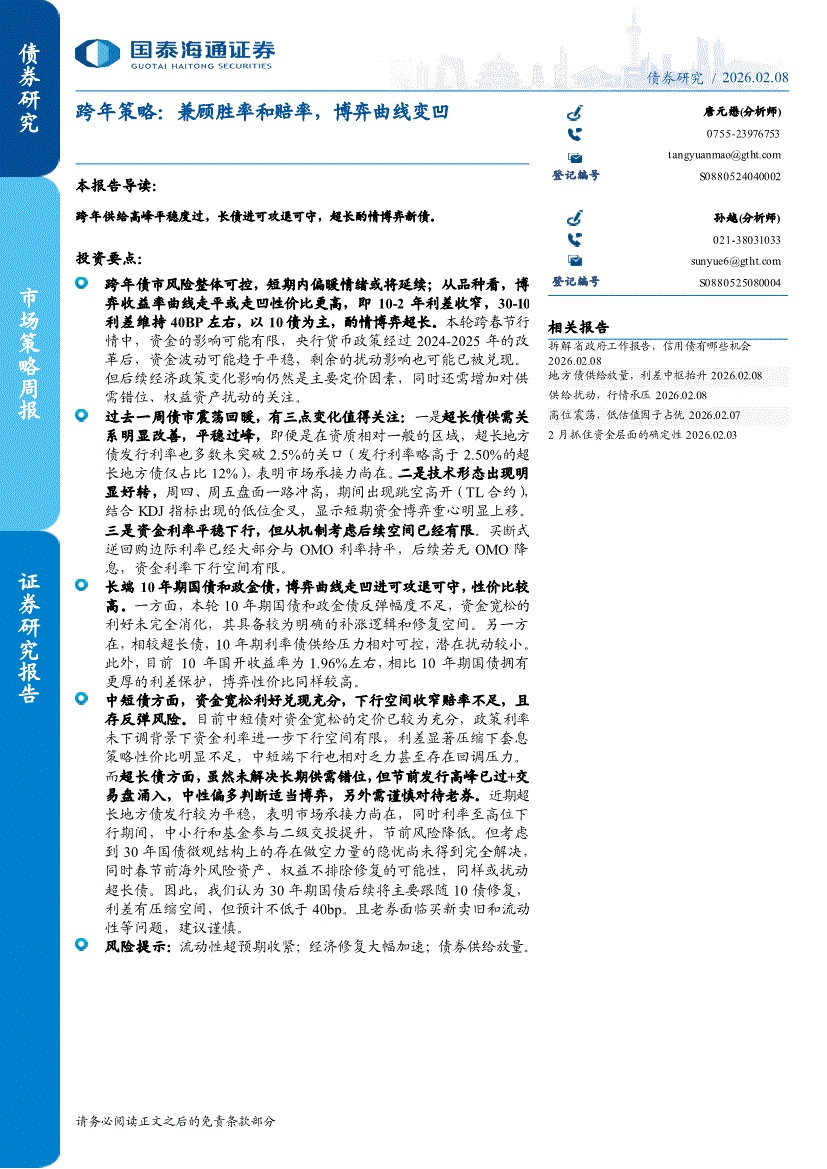 国泰海通证券-地方政府债周度跟踪:地方债供给放量,利差中枢抬升-260208