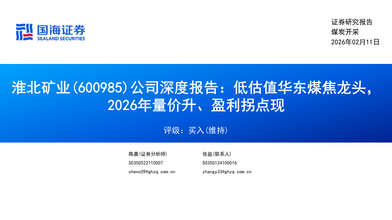淮北矿业:国海证券-淮北矿业-600985-公司深度报告:低估值华东煤焦龙头,2026年量价升、盈利拐点现-260211