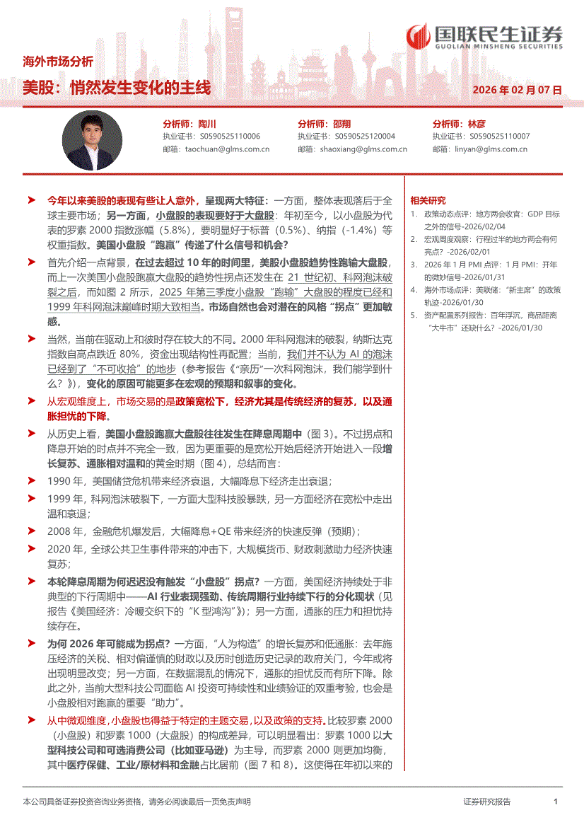 国联民生证券-海外市场分析:美股,悄然发生变化的主线-260207