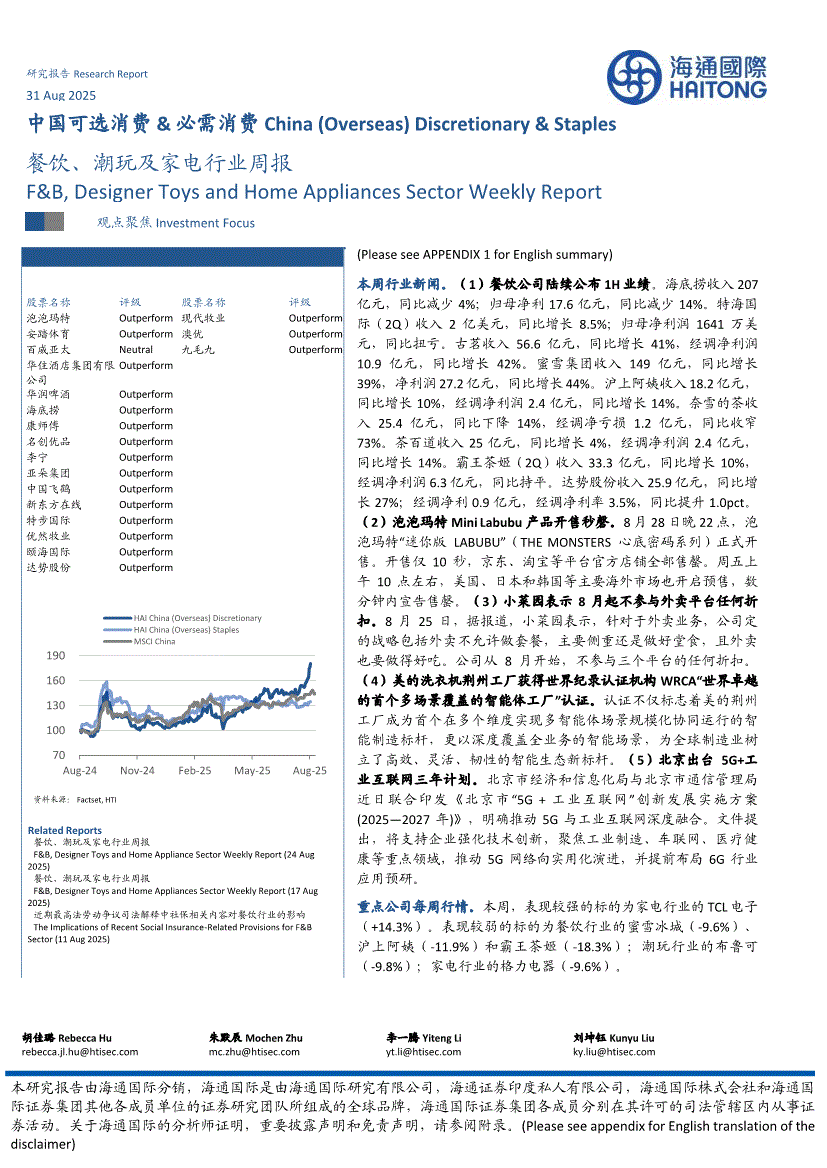 餐饮、潮玩及家电行业:海通国际-餐饮、潮玩及家电行业周报-250831