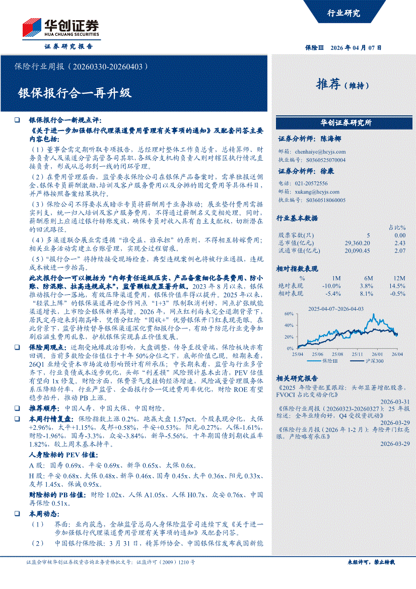 保险行业:华创证券-保险行业周报:银保报行合一再升级-260407