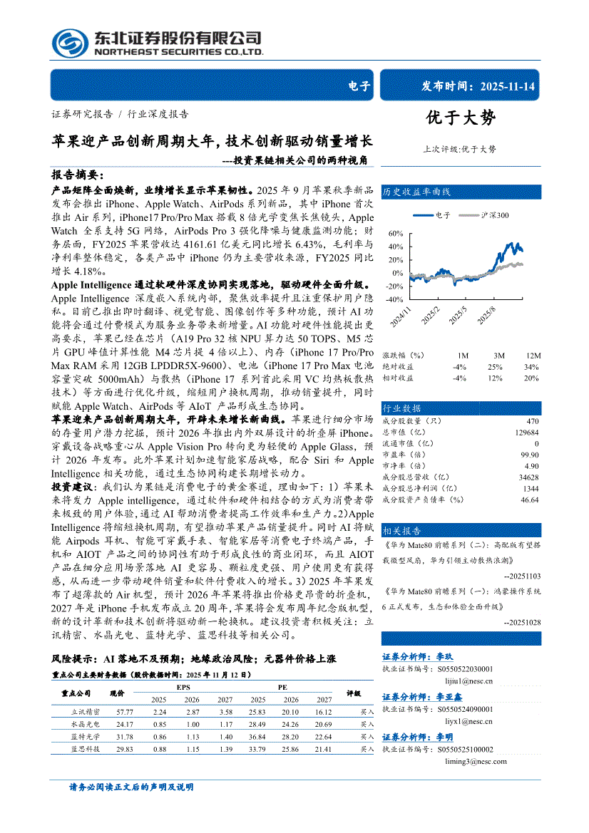 电子行业:东北证券-电子行业投资果链相关公司的两种视角:苹果迎产品创新周期大年,技术创新驱动销量增长-251114