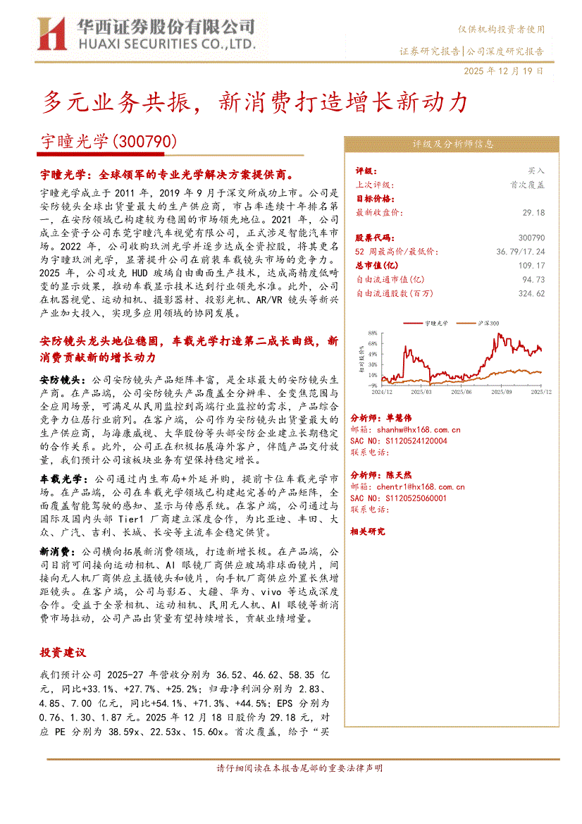 宇瞳光学:华西证券-宇瞳光学-300790-多元业务共振,新消费打造增长新动力-251219