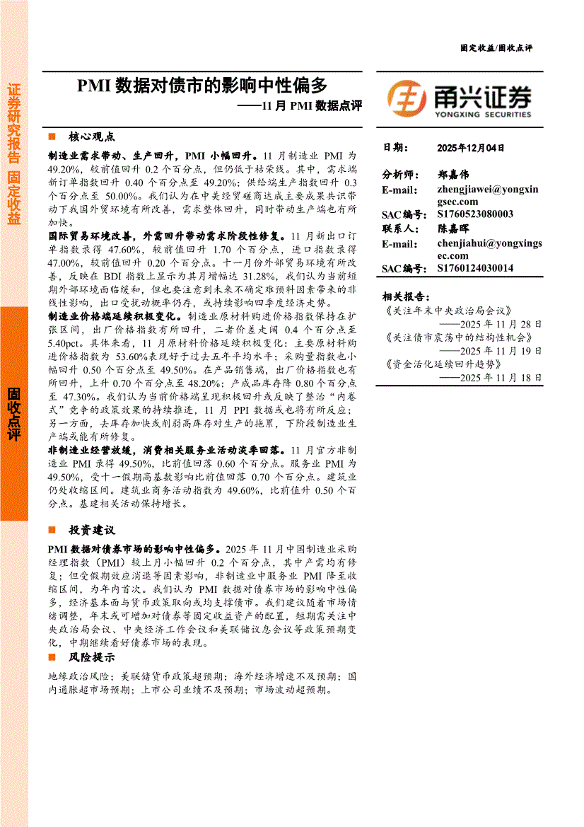 甬兴证券-11月PMI数据点评:PMI数据对债市的影响中性偏多-251204