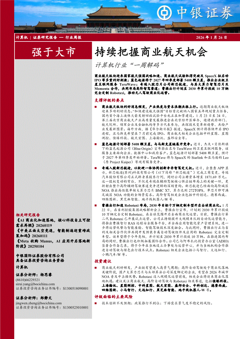 计算机行业:中银国际-计算机行业“一周解码”:持续把握商业航天机会-260126